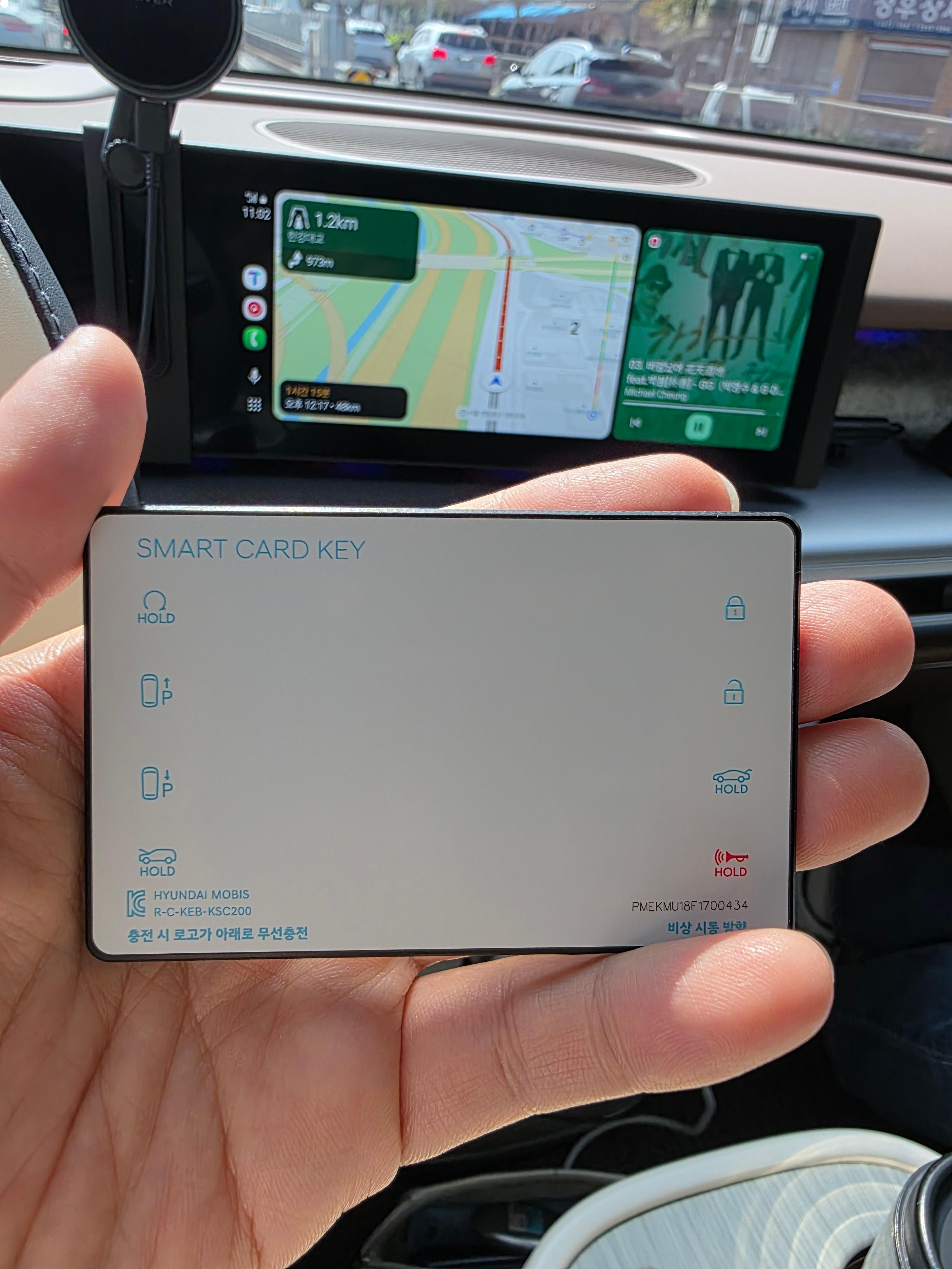 마지막은 바로 카드키입니다. 솔직히 현대차의 그 '공룡알' 모양 스마트키... 디자인이 예쁘다고 하기는 어렵잖아요? 😅 주머니에 넣으면 볼록 튀어나와서 불편하고, 테이블 위에 올려두기도 애매해서 늘 불만이었습니다.